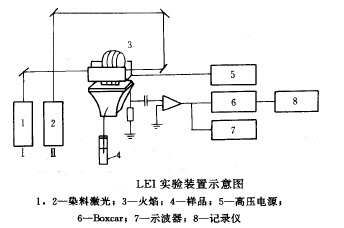 將激光選擇性激發原理用于火焰原子化器的元素分析,發展了另一種激光電離光譜技術? 激光增強電離光譜(laser enhanced ionization , LEI )。下圖是LEI 典型實驗裝置示意圖。當火焰中的原子被可調諧激光選擇性地激發到接近電離連續態的高能態時,受激原子的熱碰撞電離效率將顯著增加,產生電子和正電荷離子。通過置于火焰兩旁的高壓電極收集所形成的離子,便得到光電離信號。經過多年研究,LEI 技術已趨成熟,而且已擴展到石墨爐、等離子體以及微波等原子化器。多數元素的檢測限在ng/ml~Pg/ml 范圍,靈敏度比石墨爐原子吸收光譜(graphite furance atomic absorption spectroscopy, GFAAS)高1~2 個數量級,與激光誘導原子熒光光譜分析的靈敏度處于同一水平。LEI 檢測的是電流信號,具有檢測效率高、不受散射光等雜散光背景干擾的優點,是非常有發展前途的激光痕量分析方法之一。鑒于LEI 方法已足夠成熟和用途廣泛,許多學者認為,現在應是LEI 走出激光實驗室,步入普通分析實驗室的時候了。