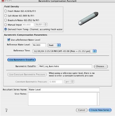 從HOBOU20水位氣壓補(bǔ)償助理使用的水壓力數(shù)據(jù)你來(lái)補(bǔ)償氣壓,并創(chuàng)建一個(gè)記錄和其他信息