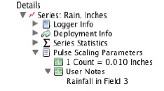 顯示該地塊后,您可以應用過濾器,你會規模系列任何其他系列在HOBOware。除了最低,最高,平均過濾器,最系列,規模的脈沖序列,允許你創建一個新的系列顯示過了一段時間的總和。