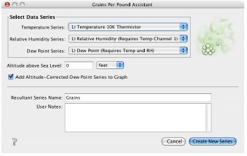 3。如果您的數據文件包括多個溫度,濕度,或露點系列,選擇你要使用從系列下拉列表。 (如果你的記錄器支持