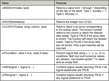 其他有用的操作,包括冷凝成每小時(或每天)值的數據,到周末或空置期間的分離,并確定是否是開啟或關閉電機。 Excel提供了以下功能,從時間戳中提取的信息