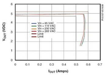 圖2描述了25℃條件下對整個輸進電壓范圍內的輸出電壓及電流的嚴格控制。圖2中所示的LinkSwitch-II的輸出容差是以P/G封裝在0℃至100℃的結溫度范圍內指定的。