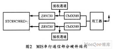 動目標識別系統(MIS)中的串行通信主要是MIS協議幀的實現。圖2所示是其硬件模塊的主要結構。