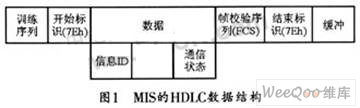 MIS的數據控制采用高級數據鏈路控制規程(HDLC)。HDLC是面向比特的協議,使用位填充來保證數據的透明性。HDLC規程具有透明傳輸、控制簡單、可靠性高、傳輸效率高的特點,因而具有極大的靈活性。圖1所示是MIS系統的HDLC數據結構。