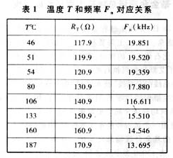 因為我們事先并不知道被測溫度T,但RC網絡的ωn是客觀存在的,并隨T的變化而變化。圖1中顯示控制儀的功能就是要獲得在這一時刻網絡的ωn,從而根據表1顯示該時刻的被測溫度T。