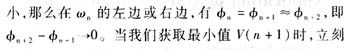 V(n+1)的條件(見圖3),這個最小值V(n+1)是虛假的,它對應的ω不是我們要的ωn,所以必須剔除。如何辨別最小值V(n+1)是真是假呢?