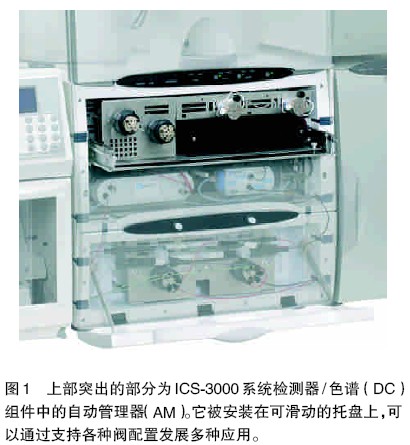 DC 組件包括分離、檢測和自動控制三部分。分離柱所處的環境是可控溫的。為滿足一元或二元系統的需要,在DC 中帶有電導和電化學兩種檢測器。它們的檢測池都是即插即用型的。在DC 組件的底部還有2 個用于進樣和樣品預處理的閥。所有的閥都位于一個可滑動的托盤上,便于安裝和維護。DC 組件的一個重要部分AM,可以配置2個高壓閥、2個低壓閥和1 個柱后反應加熱器。它可以使閥切換變得更容易。