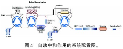 閥切換技術的另一個應用是自動中和作用。該技術主要用于高濃度堿溶液中陰離子的定量分析。分析這類樣品通常采用的方法是將樣品稀釋到基體離子不影響分離的水平。然而稀釋的同時也降低了痕量陰離子的濃度,會影響其檢測。