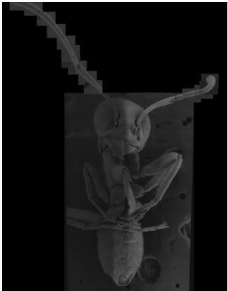 這張螞蟻顯微圖片是由136張有電子顯微鏡拍得的照片拼起來的。(此為原圖縮小后的圖片)
