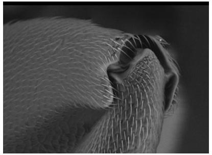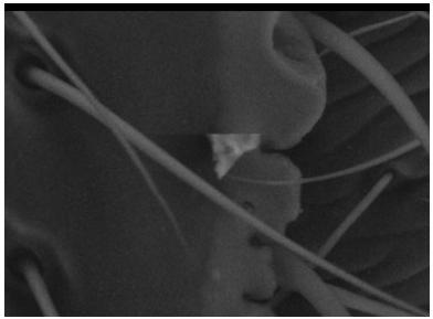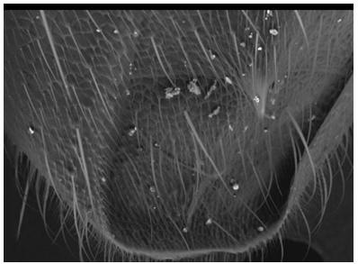 這張圖片是由136張有電子顯微鏡拍得的照片拼起來的。這樣人們就能夠非常清楚地觀察螞蟻身上的各個(gè)細(xì)節(jié)。這些照片是由位于加州的美國宇航局艾姆斯研究中心(Ames Research Center)的莫利-吉布森拍攝的,在納米技術(shù)專家杰伊-隆森的幫助下這些奇異的圖片得以呈現(xiàn)在人們面前。不過由于光學(xué)顯微鏡的視場沒有電子顯微鏡深,所以用光學(xué)顯微鏡無法獲得如此奇異的圖片。