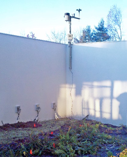 氣象觀測站,收集示范小區,每15分鐘一班,每天24小時,為2012-2013年生長季節的持續時間的數據。站所收集的數據將有助于確定具體的空氣溫度,濕度,水分含量,產生最健康的植物,并了解如何進行屋頂綠化。