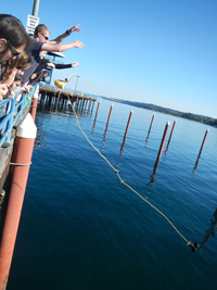 學生分成三組,建立了自己的系泊在淺水中使用(一般小于20’)在社區碼頭系泊的數據記錄器和部署在不同深度的測量溫度和光照。堅固的HOBO允許學生設計浮標為自己的記錄儀 - 東西會不會有可能更昂貴或精致的儀表幾乎完全緯度。建筑系泊的行為成為海洋學學生介紹的工程挑戰,擁抱,一些熱心分享他們的停泊的照片與其他類。