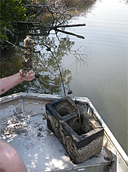我們部署每小溪一個HOBO U24電導率記錄儀。記錄儀的情況下,我鉆孔,并用一個螺絲頂部為方便下載數據時,我用PVC管道。在退潮期間每個小溪,我附上涂層電纜和PVC管包裹在電纜周圍的煤渣塊,這是我固定在4到5英尺的深度。