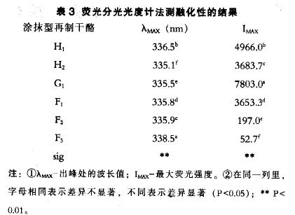光度計法測定其融化性。通過比較, 本研究探討了用前鏡熒光分光