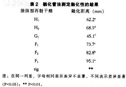 按1.3.2融化管法測定涂抹型再制干酪的融化性的結果見表2。
