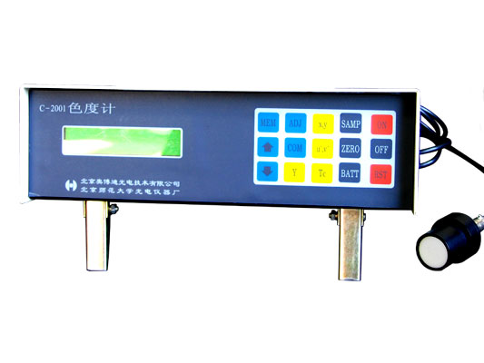 色度計(jì)C-2001: C-2001是以三刺激函數(shù)探測(cè)器為基礎(chǔ)的智能測(cè)色儀器,給出照度(lx)、色度(x、y和u′、v′)、色溫(Tc)等測(cè)量值。 照度測(cè)量范圍:0-1.999×10lx,最小分辨0.1lx 色溫測(cè)量范圍:2200-15000K