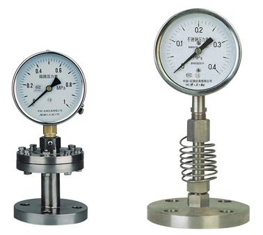 隔膜壓力表表的耐蝕性包含環(huán)境及測量介質(zhì)的腐蝕性,可按使用條件選配隔離器,隔膜、密封墊圈的材料。