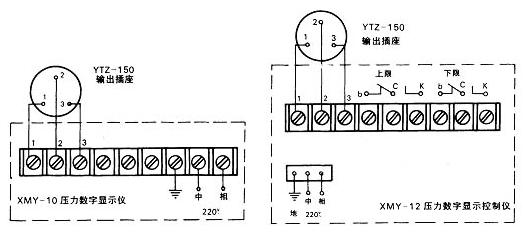 ■與二次儀表XMY-10壓力數字顯示儀及XMY-12壓力數字顯示控制儀(本廠生產)配套的接線圖: