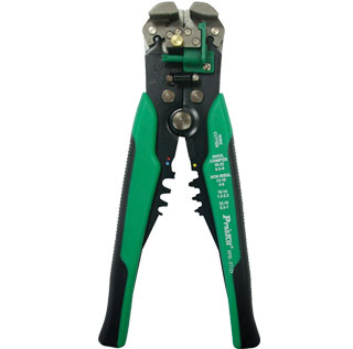 8PK-371D, 多功能自動剝剪壓線鉗(0.2~6.0mm[剝線鉗類]. 全長: 210mm. 不需調整即可輕易剝線. 對于線中央剝線, T型搭線更是便利. 功能多, 鋼材特殊硬化處理, 壽命長. AWG 24~10 (0.2~6.0mm2) 范圍內均可剝線