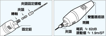 ‧ 精巧外觀設計,握感最佳 ‧ ABS塑膠本體,重量最輕 (136g) ‧ 快速更換夾頭裝置,無需任何工具 ‧ 適合鉆孔、打磨、拋光、切割等工作
