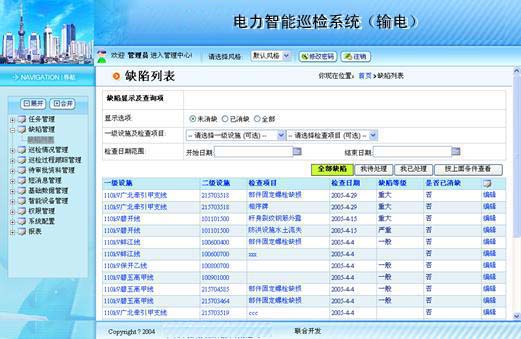 后臺管理系統能管理缺陷,包括消缺。提供方便靈活的缺陷查詢、處理方式。當用戶以不同的角色登錄本系統時,系統將根據當前人員的工作權限只列出屬于該用戶能夠處理的缺陷于“待處理”列表中,工作一目了然。