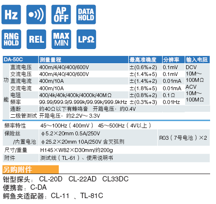 便于使用的薄型機體4000 COUNT0.6%最高準確度快速顯示刻度頻率檢測(僅正弦波交流)通斷量程為附加電壓約0.4V低電阻MAX/MIN 記錄檢測數據鎖定/量程鎖定相對值(RELATIVE)檢測自動關機(大約30分鐘)可解除顯示:數值3999 刻度:最大40采樣率:數值2次/秒 刻度20次/秒