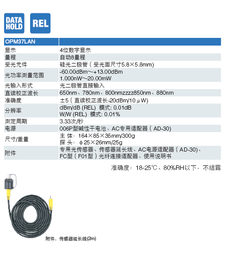 光纖專用光電功率表(短波長5檔量程)FC型光纖連接器連線