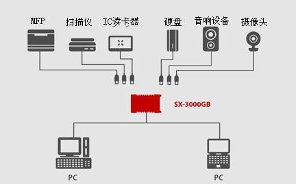 在軟件方面,SX-3000GB通過專用軟件或Web瀏覽器簡單設置和管理,可以常用的設備可以登記在常用的設備表中,使用管理起來比較方便。用戶在一視窗內直觀地管理所有已連上網絡的各項USB設備。可即時認知連接在遠方的設備。當USB設備通過SX-3000GB連上你的PC,該設備的應用軟件就會自動啟動。情況就如該設備直接連上你的PC一樣。