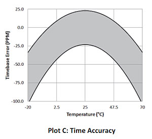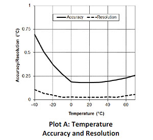 范圍: -20°C至70°C(-4°至158°F)精度: ±0.21°C從0°到50°C(±0.38°F 32°至122°F),Plot A (A圖)