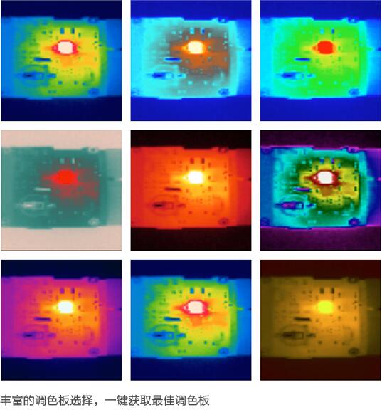 為尋找最佳成像效果,還在頻繁點擊菜單嘗試不同調色板?Fotric 222s引入預覽調色板功能,將當前場景的13種調色板實際效果一次性呈現(xiàn)在工程師眼前,一鍵即可獲取最佳調色板。