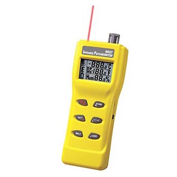 基本功能特色:獨特構思,紅外線溫度/濕度/露點濕球溫度測量合為一體:激光紅外線溫度計.放射率可調整,背光照明;計算濕球溫度和露點;濕度測量:0-100% 采用瑞士原裝濕度傳感器;RS23接口輸出。